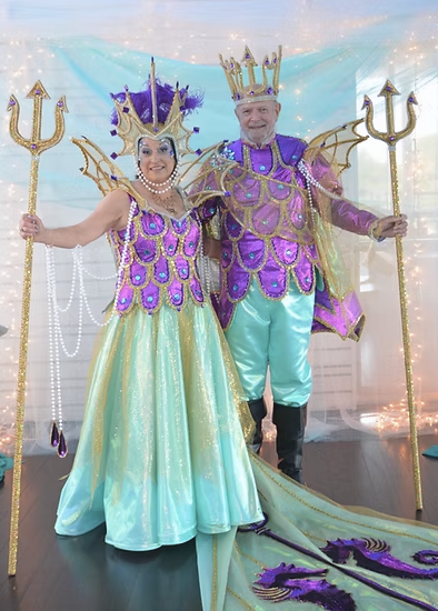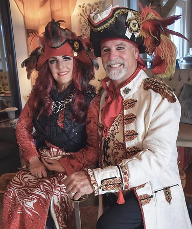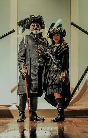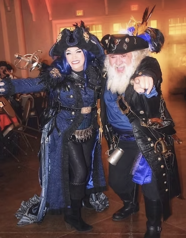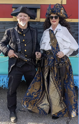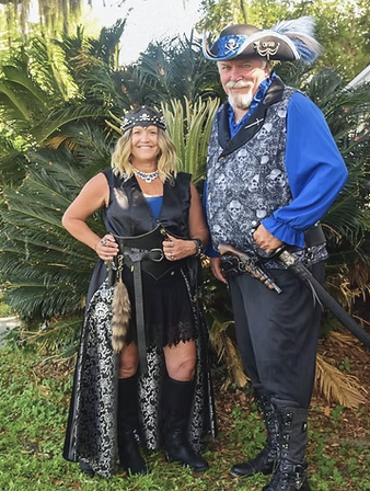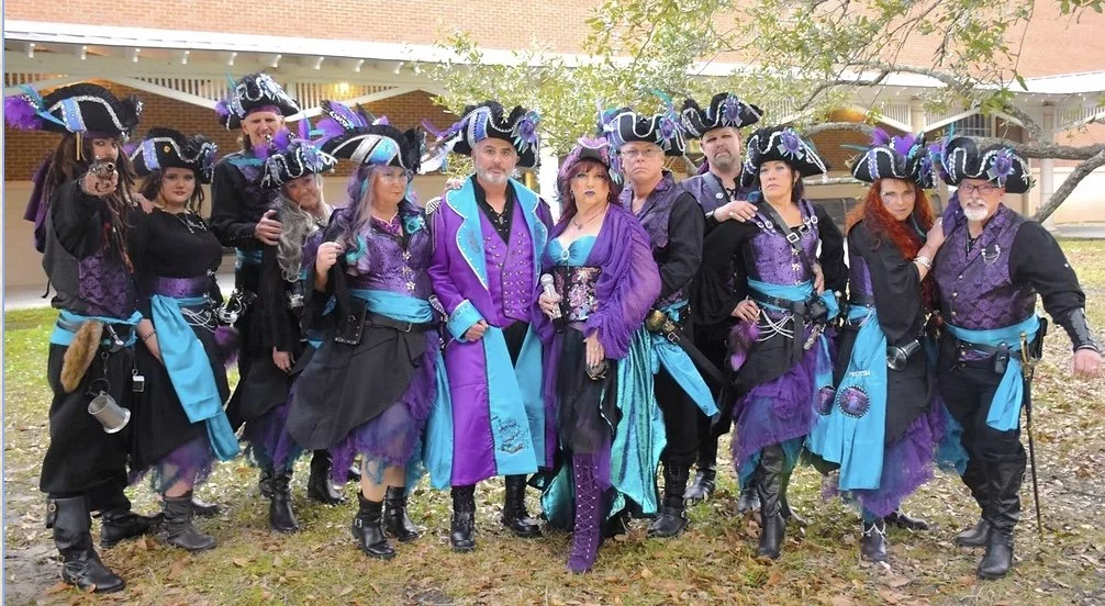 Our Krewe began as a traditional Mardi Gras Krewe of Pirates. Years 2014 - 2019 were reigned over by King Oceanus and Queen Tethys. However, by popular demand, we adopted a full pirate identity and our Krewe royalty now reign as Captain Longberard and Lady Claiborne. Our Krewe royalty reign for a full year, along with the Honor Guard of 5 loyal men and 5 loyal women. HUZZAH! Long may they reign!