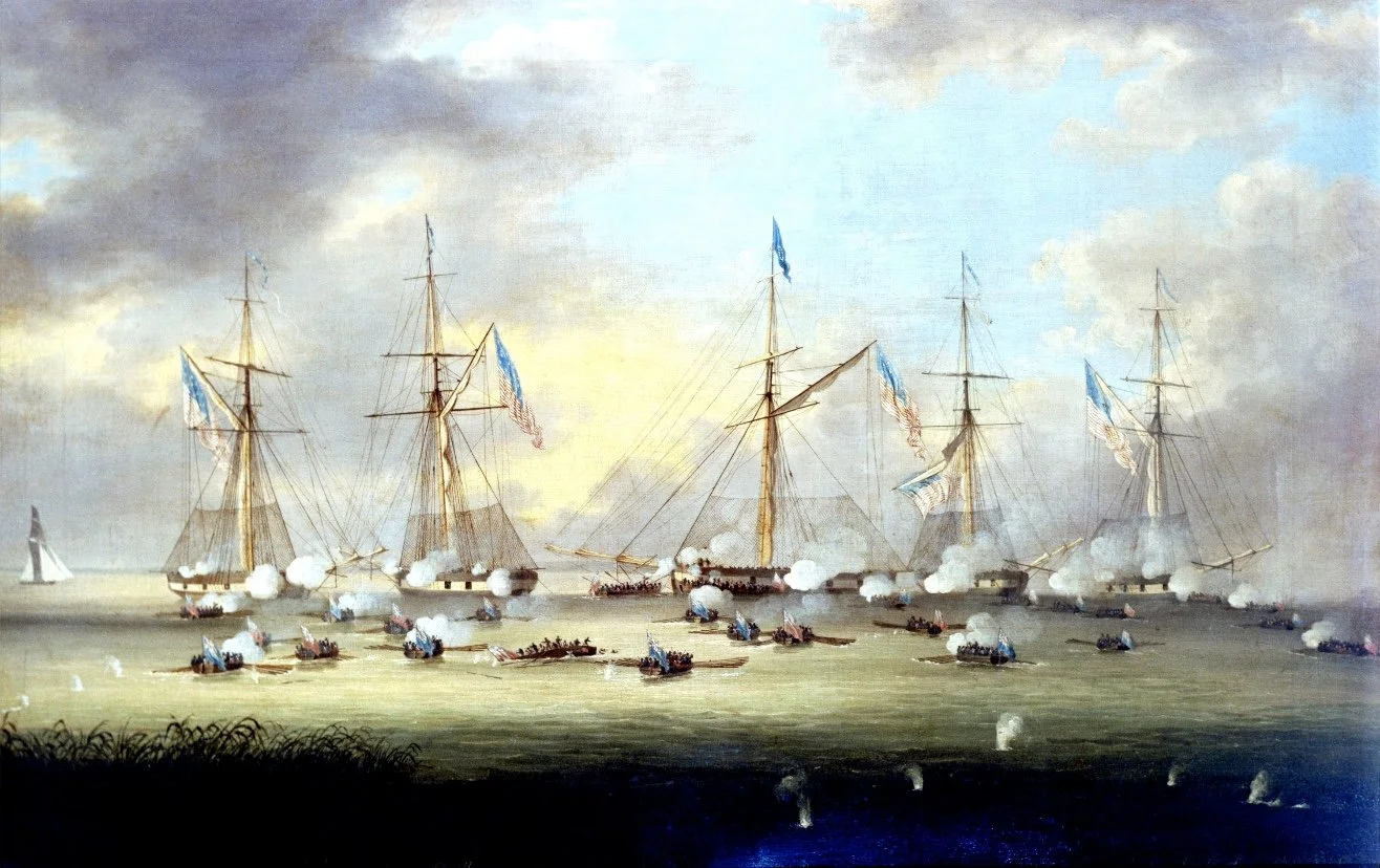 The U.S.S. Seahorse in the Bay of St. Louis, had not yet made it to its dock at the Ulman Ave. Pier in Bay St. Louis when it was spotted by the British from a distance, and an unknown number of boats were sent in that direction to cut the American schooner off and capture her. Sailing Master Johnson spotted the Royal Navy boats and attacked. This attack included the U.S.S. Alligator and the USS Seahorse against the whole British Fleet.